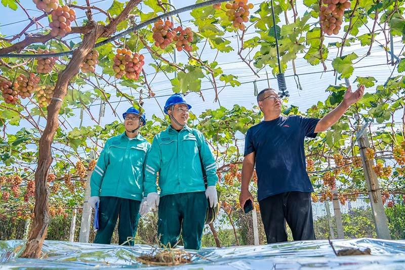在大戶陳家村,依靠葡萄產(chǎn)業(yè)走上致富路的村民越來(lái)越多。通過(guò)黨委領(lǐng)辦合作社的模式,大戶陳家村于2014年建成了占地12000余畝的現(xiàn)代化葡萄智能種植園區(qū)。為保障葡萄產(chǎn)業(yè)蓬勃發(fā)展,2025年以來(lái),國(guó)網(wǎng)煙臺(tái)供電公司大力開展電網(wǎng)升級(jí)改造,新建10千伏線路1.4千米,共計(jì)安裝變壓器3臺(tái),新增配變?nèi)萘?00千伏安,確保種植農(nóng)戶發(fā)家致富“電力十足”。